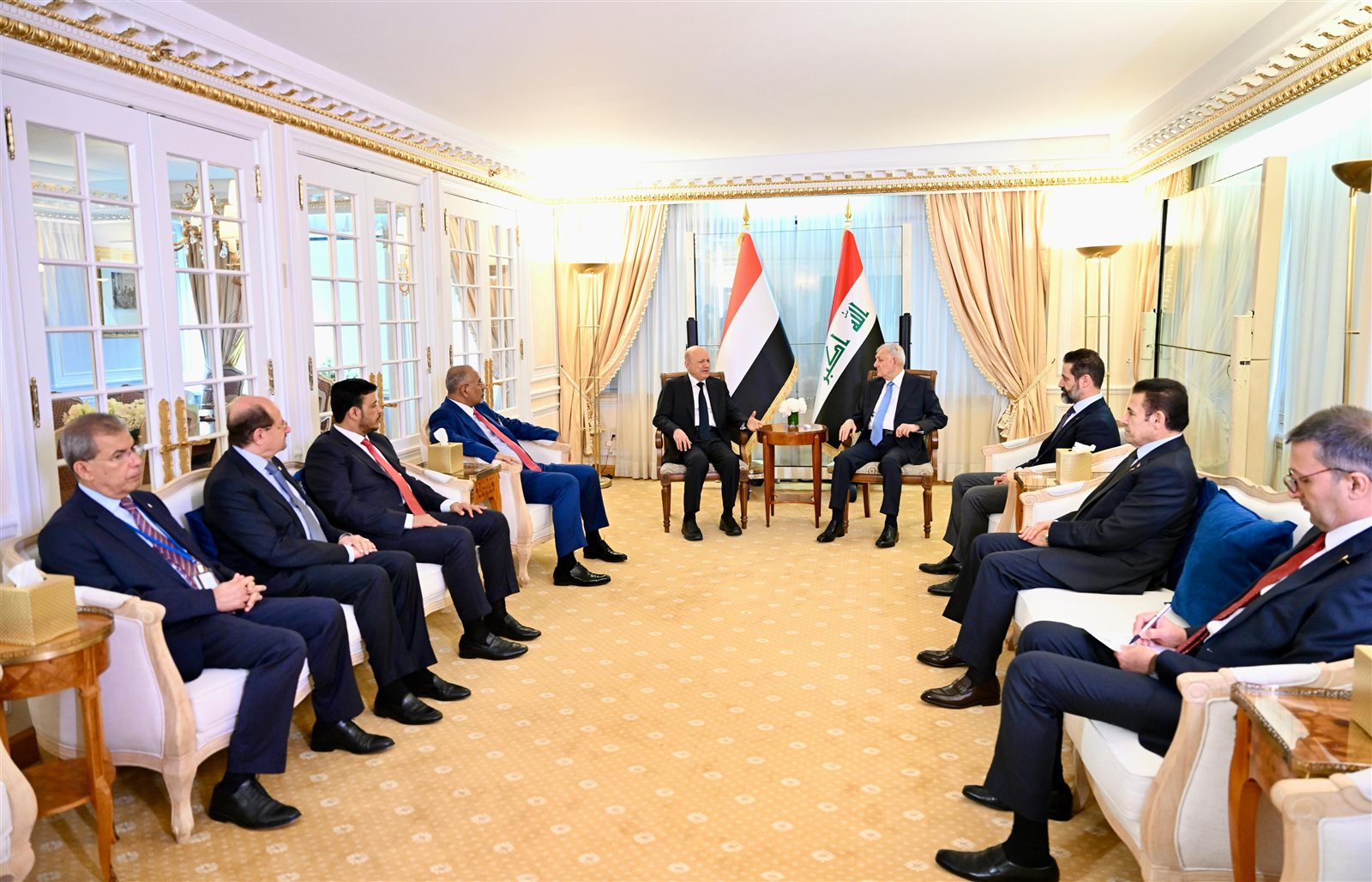 الرئيس الزُبيدي يلتقي ضمن وفد مجلس القيادة الرئاسي رئيس جمهورية العراق ووزير خارجية البحرين