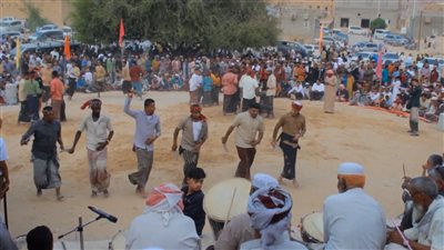 "تقرير" حضرموت.. أهالي منطقة عينات بتريم تختتم فعالياتها العيدية برقصة البرعة