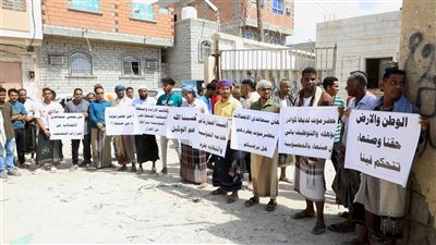 وقفة احتجاجية لموظفي عدد من المرافق الحكومية في المكلا